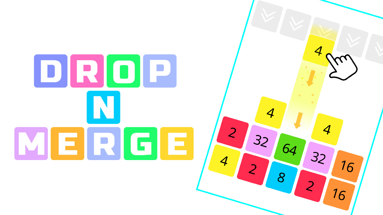 DROP AND MERGE THE NUMBERS is a new kind of game like 2048. Just drop a block, it will automatically merge with identical numbers that are near it. It can create a chain reaction if you are good enough. How many blocks can you unify and what score can you reach before you loose?